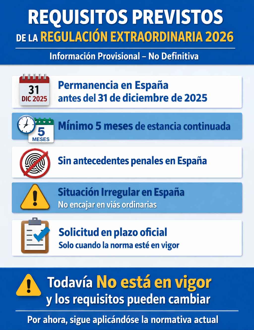 Información provisional sobre la futura regulación extraordinaria de extranjeros en España en 2026